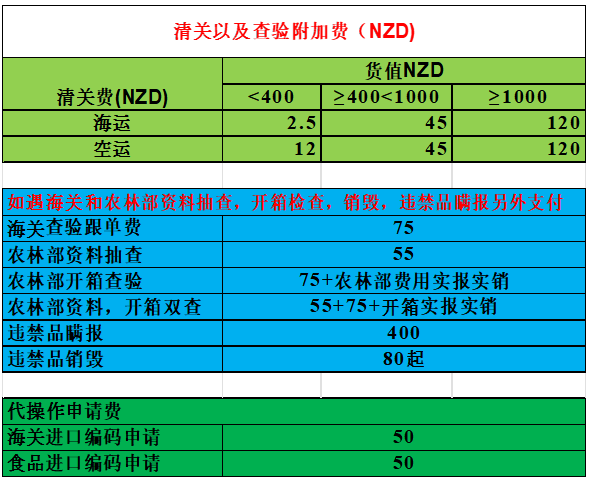 2.2.11特别说明:如果你的商品已经如实申报,在抽查监拆中被农林部检查,则只收取正常检查费135NZD/票+销毁费80NZD/票。